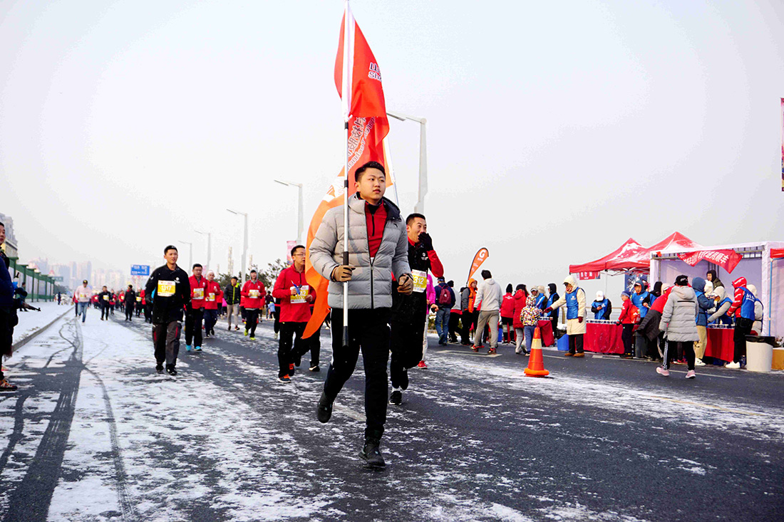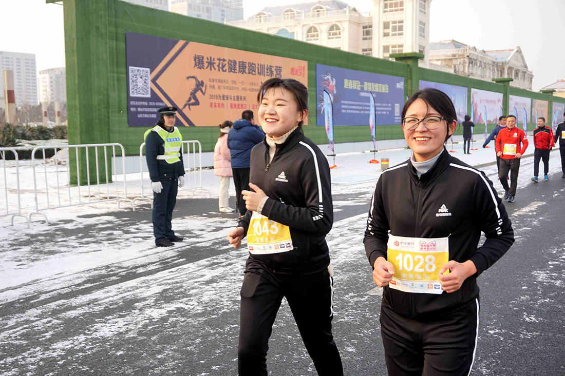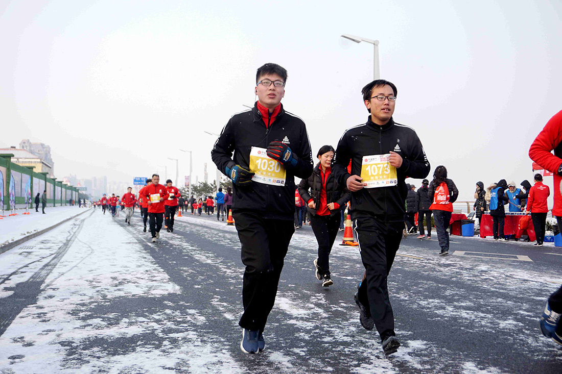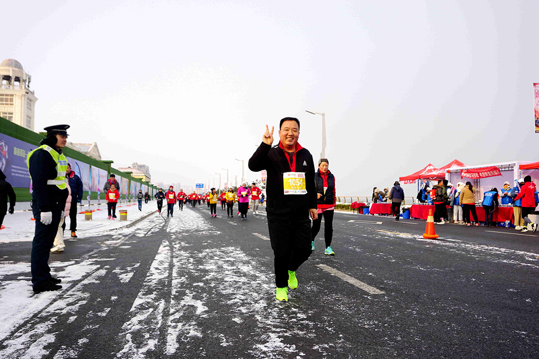 加快步伐冲过了终点 他们在寒风中展示着坚持不懈,努力拼搏的运动精神